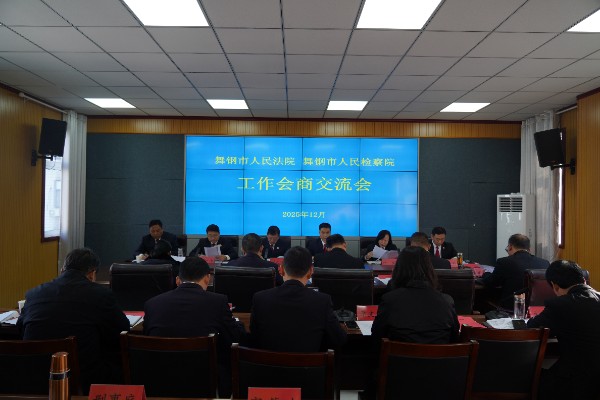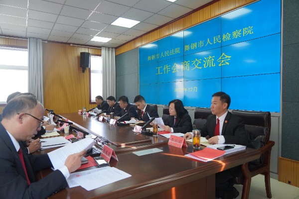 为进一步加强法检两院协作配合,提升司法办案质效,12月5日,舞钢市人民法院与舞钢市人民检察院共同召开工作会商交流会。舞钢市人民法院党组书记、代院长王二朝,舞钢市人民检察院党组书记、检察长顾武修出席会议并讲话。法检两院班子成员,各业务部门负责人参加会议。