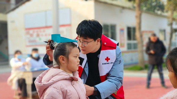 冬日送暖,情系教育。12月10日,由中国红十字基金会发起的2025年“生命教育·校园健康守护”行动(第十一站)走进上蔡县小岳寺乡中心小学。驻马店市与上蔡县红十字会志愿者携手驻马店市尖峰眼科医院、新华口腔、上蔡县人民医院等多家医疗机构专家团队,为该校师生提供视力、口腔等健康体检服务;驻马店市红十字会为该校捐赠30把椅子及足球、篮球等体育用品,传递公益关怀;驻马店市红十字会高级讲师吴春华开展应急救护培训,普及实用急救技能,用多元举措为乡村师生的健康与安全保驾护航。