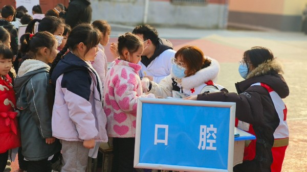 活动现场,健康体检工作率先有序开展。各医疗机构专家团队结合乡村师生的健康需求,精准设置体检项目并分工协作。驻马店市尖峰眼科医院医护人员为师生进行视力检测、屈光筛查,针对乡村学生常见的视力问题,现场讲解科学护眼知识,提醒大家养成良好的读写习惯,避免长时间用眼疲劳;新华口腔医生逐一为师生检查口腔健康状况,对龋齿、牙周炎等常见问题进行登记反馈,并讲解刷牙、护牙的正确方法,引导师生重视口腔保健;上蔡县人民医院团队则为学生开展身高、体重等基础检测,结合生长发育特点给出饮食、运动方面的科学建议,助力孩子们健康成长。医护人员的耐心服务与专业指导,让乡村师生在家门口就享受到了优质的医疗资源。