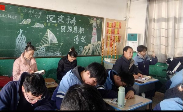 活动期间,焦新奇和殷培君的身影总是最早出现在教室后排。他们时而凝神聆听,时而俯首记录,目光中既有对教学细节的专业审视,更有对师生成长的殷切期盼。在评课交流时,他们勉励教师要做“善教者”,让课堂成为传承智慧、启迪心灵的圣殿。他们的点评既有高屋建瓴的视野,又饱含教育者的温度,令人如沐春风。