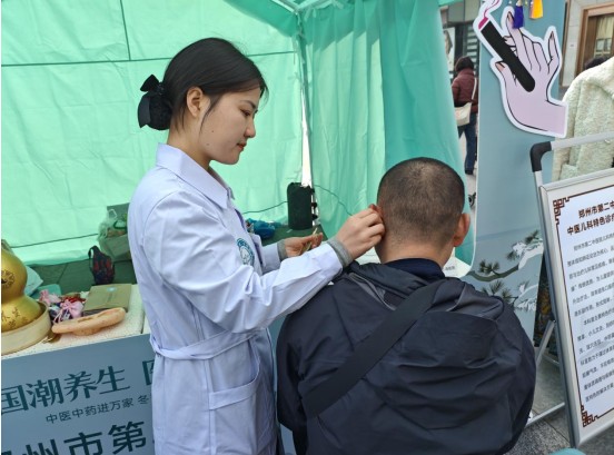 在“硬核养生区”,来自区内医疗机构的专家团队为市民提供了免费脉诊、体质辨识及个性化健康咨询。针对冬季多发的呼吸道问题、颈椎不适等,艾灸、推拿、耳穴压豆等中医特色疗法体验前排起了长队,让群众切身感受到其“简、便、验、廉”的独特魅力。一位刚体验完耳穴调理的年轻白领表示:“逛街时顺道就能体验专业的中医调理,这种形式特别适合我们上班族。”
