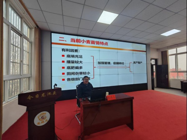 培训会上,县农科所研究员王伟担任主讲。他首先结合近期田间调查数据,对当前小麦苗情特点进行了全面而细致地梳理与分析。王伟指出,今年晚播小麦普遍存在个体生长量不足、群体茎蘖数偏少、根系发育相对迟缓等情况,整体抗寒、抗旱能力较弱,越冬管理面临特殊考验。因此,他特别强调,今年的冬管工作要坚持“因苗施策、分类管理、精准到田”的核心原则,杜绝“一刀切”的传统做法,要根据不同地块的播种时间、土壤墒情、苗情长势等具体情况,灵活调整、组合运用各项农艺措施。