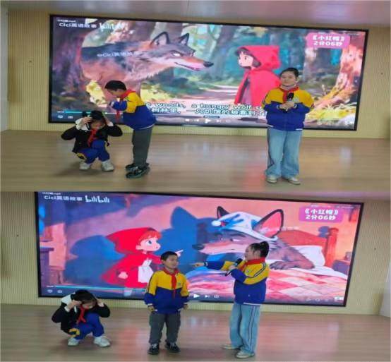 四年级学生开始展现“导演”意识。在演绎“神笔马良”时,会自行添加一些情节;在对比“小红帽”与本土故事时,能提出稚嫩而有趣的观察。语言开始出现复合句,并尝试使用“because”, “but”等连接词。小组表演时,已有简单的角色分工。学生从“复述句子”迈向“组织情节”,开始关注故事的起因、经过、结果。这是逻辑思维与语言组织能力的同步锻炼,为写作和深度表达铺路。