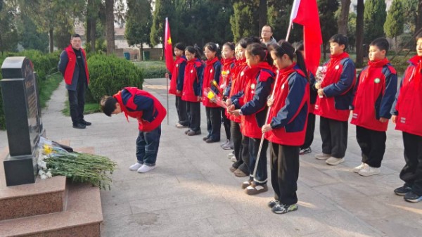 “亲爱的同学们、老师们,你们眼前的每一座墓碑,都镌刻着一段可歌可泣的英雄故事;你们脚下的这片土地,都浸染着先烈们的赤诚与热血。今天的和平盛世,是他们用生命换来的;今天的幸福生活,是他们用牺牲守护的。”沈丘县树人小学校长豆华丰饱含激情的话语感染了在场的每一个师生。