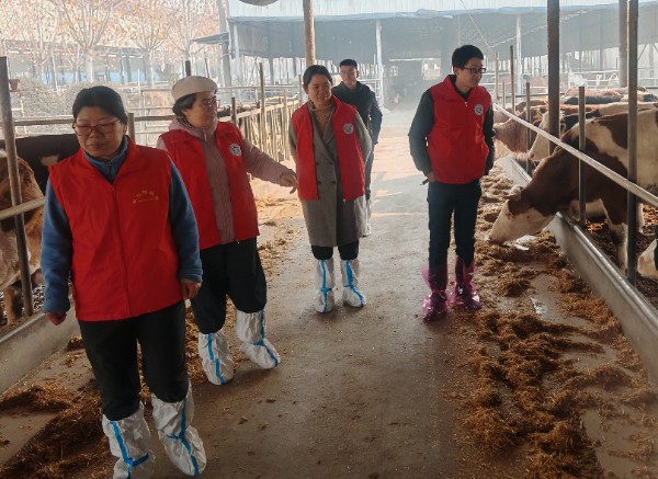 随着冬季的到来,气候寒冷,环境应激加大,会降低肉牛的生长性能,同时也是口蹄疫、犊牛腹泻、呼吸道疾病等的高发期。为了破解养殖场所面临的生产难题,为了有效减缓或避免寒冷天气可能给肉牛养殖场带来的不良影响,提高养殖水平,推动肉牛产业健康、可持续发展,12月5日,由河南省农业科学院畜牧研究所郎利敏团队5名专家组成的科技特派员服务队前往上蔡县欣燃农牧有限公司开展了一次多学科、全方位的技术服务,指导养殖场采取科学合理的饲养管理、饲料营养、疫病防控等措施,保障养殖场冬季正常生产,提高养殖效益。