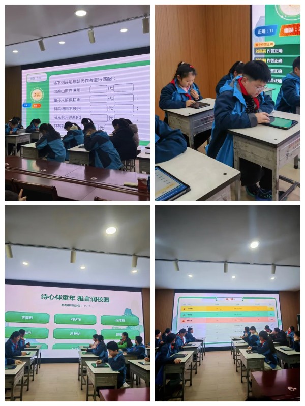 活动中借助平板电脑等设备辅助答题,提升了互动性与参与感。日常教学中,学校通过类似方式开展诗词学习活动,让传统与科技相结合,激发学生学习兴趣。