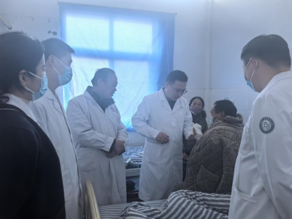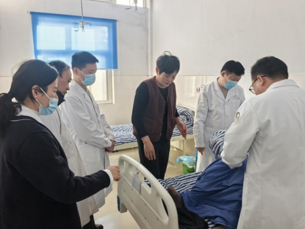 联合查房小组与卫生院医护人员围绕住院患者尤其是疑难病症、术后康复病例展开细致诊疗。每到一处,卫生院医护人员都详细汇报患者病史、检查结果、当前诊疗方案及恢复情况,重点说明治疗中的难点与疑问。邵志军凭借丰富的外科临床经验,细致为患者查体,结合影像学资料精准研判病情,针对复杂手术病例的术后恢复、并发症预防等提出优化建议,分享前沿手术理念与实操技巧;史龙恩聚焦手术病人合并多种慢性病综合治疗,从用药规范、病情监测等方面给出专业指导,强调中西医结合诊疗的优势;吕子刚则围绕临床护理细节、康复训练要点与护理人员深入交流,提供针对性实操指导。