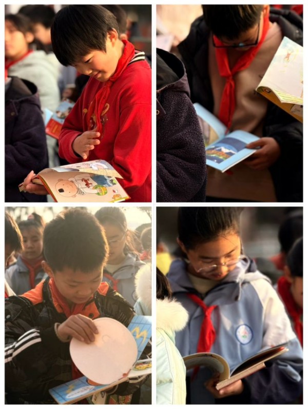 拿到新书的孩子们,眼睛里闪烁着兴奋的光芒。他们小心翼翼地摩挲着光滑的封面,迫不及待地翻开书页,有的凑在一起小声分享书里的趣味插图,有的捧着书坐在课桌前看得津津有味,嘴角不自觉地扬起笑意。那一张张稚嫩的脸庞上,满是对知识的渴望与满足,这份由爱心浇灌的喜悦,在冬日的校园里漾开了一圈又一圈温暖的涟漪。