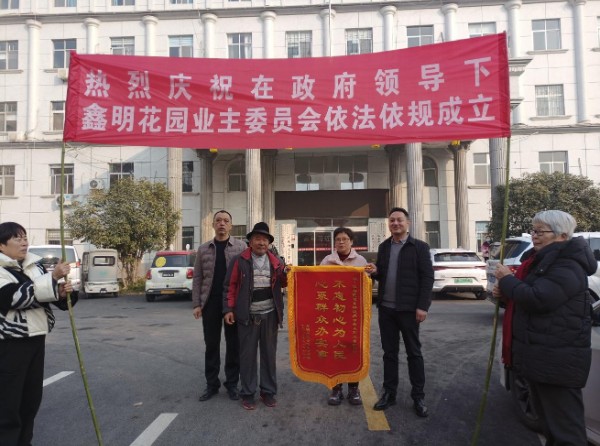近日,开封市祥符区鑫明花园小区业主代表手持一面印着“不忘初心为人民,心系群众办实事”的鲜红锦旗,走进祥符区城东街道办事处,致谢街道数月来多方奔走,助力小区成功成立业主委员会,圆了居民“自治管理”的心愿。