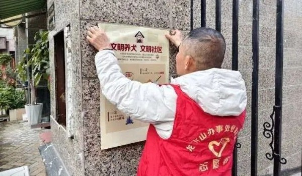 在各住宅小区出入口、公告栏、电梯间等醒目位置,统一张贴了设计醒目、内容明确的文明养犬宣传海报。海报以通俗易懂的图文形式,直观展示文明养犬“要做什么”和“不能做什么”,起到长期、固定的提醒和教育作用,使文明养犬理念融入居民日常生活场景。