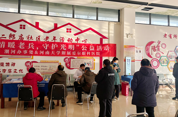 情系老兵·光明同行|河南大学附属爱尔眼科医院走进经开区潮河办事处退役军人服务站开展眼健康公益活动