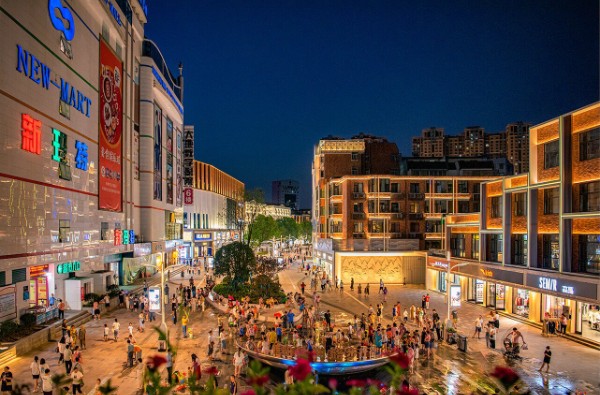 在距此不远的胜利路步行街,同样焕发着蓬勃生机。这条历史底蕴深厚的商业街区,采用“新豫风+现代时尚”风格,以信阳毛尖“一芽两叶”为设计核心,完成交通提升、建筑立面改造、景观打造、夜景亮化、店招优化、智慧服务、市政设施完善、文化特色塑造、业态升级九大工程,形成“五大综合体+商超+沿街商铺”的支撑体系,构建“主力商业+特色业态+融合业态”格局,实现了规划科学、空间开阔、功能完备的华丽转身。