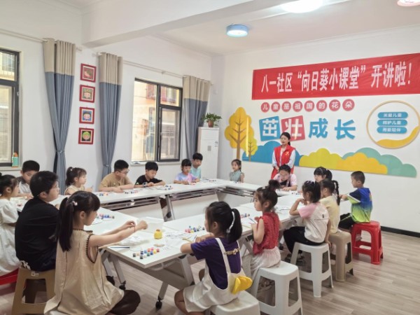 “在养老服务领域,我们推行‘党建+美好邻里中心’一聚五送服务模式,针对高龄、失能、独居等特殊老人,组建‘3+1’联系服务对子,提供‘四帮’服务;在少儿关爱方面,开设‘向日葵小课堂’,联动爱心商户与热心群众开展书法、美育等活动,寒暑假提供课业辅导与免费托管,填补家长‘管理真空’。”五里墩办事处八一社区党支部书记王冰说。