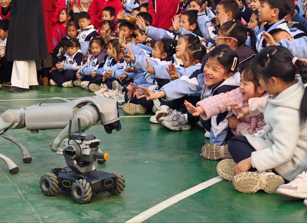 活动现场,各类智能设备的展示区被同学们围得水泄不通。伴随着动感的音乐,智能人形机器人灵活地完成了街舞动作,流畅的肢体衔接让同学们直呼“太厉害”;机器狗在讲解员的指令下,时而昂首阔步,时而伏地前行,还能向同学们打招呼,萌趣又智能的表现收获阵阵掌声;机甲坦克机器人则凭借酷炫的外形和灵活的远程操控,成为了全场的“人气王”,不少同学踮着脚尖,生怕错过任何一个精彩瞬间。