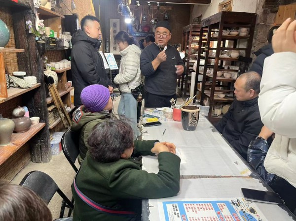 活动开始,残疾人朋友们在工作人员的引导下走进鹤壁窑博物馆,担任讲解的是鹤壁窑古瓷代表性传承人张卫国,系统讲解了鹤壁窑作为中国古代陶瓷艺术重要代表的历史渊源、文化价值与艺术特色,近距离观赏瓷器,直观感受古窑文化的厚重底蕴。随后,大家前往鹤壁窑传习基地,这座保存完好的清代三进宅院,亦是河南省工艺美术大师、鹤壁窑古瓷代表性传承人张卫国的工作室。在这里,大家近距离观摩了拉坯、修形、施釉、烧制等陶瓷制作全流程,亲眼见证平凡泥土在匠人手中蜕变为精美瓷器的过程,纷纷对传统技艺的精妙赞叹不已。