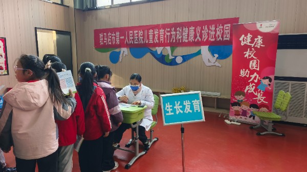 活动现场,健康服务区域有序划分,眼科检查、口腔诊疗、生长发育评估等多个专项服务台依次排开。来自各医疗机构的专家团队凭借专业的诊疗技术,为同学们提供细致入微的检查服务。尖峰眼科医院的专家耐心为孩子们检测视力、排查眼部问题,结合常见近视诱因讲解科学护眼知识,叮嘱大家减少电子产品使用、坚持做眼保健操;新华口腔的医护人员仔细检查每一颗牙齿,针对龋齿、牙周护理等问题给出个性化建议,用生动的语言普及口腔健康常识;驻马店市第一人民医院的专家则通过身高体重测量、生长曲线分析,为孩子们的营养均衡与生长发育提供科学指导,温柔的态度有效缓解了孩子们的紧张情绪,现场秩序井然。