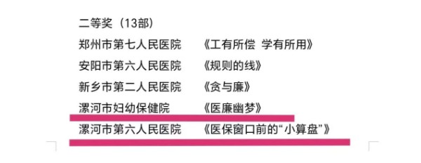 漯河市高度重视此项活动,精心组织,积极动员全市各医疗卫生单位参与创作。经广泛征集与严格评选,漯河市共遴选推荐6部优秀情景剧作品参与全省角逐。最终,在全省57部获奖作品中,漯河市作品荣获二等奖2部、三等奖2部。其中,漯河市第六人民医院创作选送的《医保窗口前的小算盘》凭借其深刻的内涵与精湛的演绎,成功入选全省展演环节,充分展现了漯河市医务工作者廉洁自律、仁心仁术的精神风貌与艺术创作才华。
