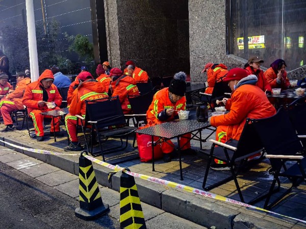 冬至饺子香飘疏导点 · 爱心情暖环卫工——郑州市金水区黄河南街便民疏导点开展爱心送饺子活动