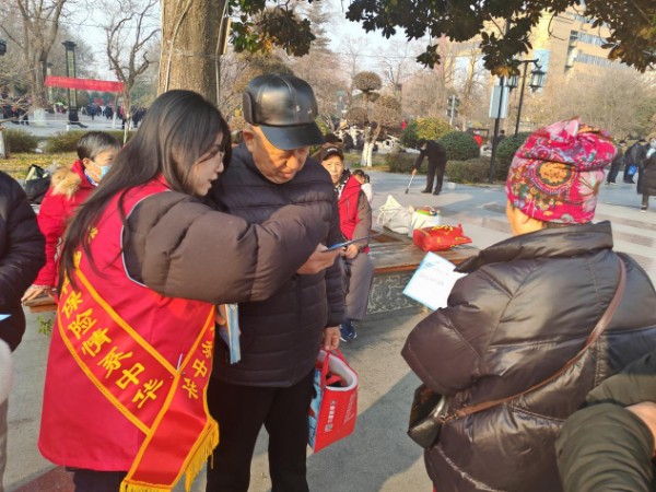 中华财险洛阳中支专门成立防范养老领域非法金融活动宣传小队,精准走进周王城广场、城市阳台等老年群体集中区域。通过悬挂横幅,主动走近老年群体发放宣传资料、俯身答疑解惑。现场讲解用通俗的语言揭露以“养老服务”“养老项目” 等为名的非法集资、洗钱犯罪等诈骗套路,详解其危害与防范要点。