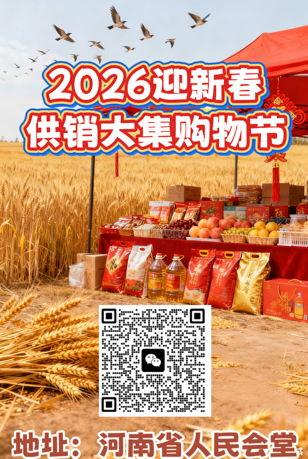 为深入学习贯彻党的二十大、二十届四中全会精神和习近平总书记重要指示精神,落实豫政〔2025〕9号文件部署,抢抓元旦、春节消费旺季,持续巩固拓展脱贫攻坚成果同乡村振兴有效衔接,由省供销社、省发展改革委、省财政厅、省农业农村厅、省教育厅、省卫生健康委、省商务厅、省政府国资委、省总工会、人行河南省分行十部门联合发起的“河南省2026第三届供销大集消费帮扶购物节”,将于2026年元月1日至3日在省人民会堂广场盛大启幕。