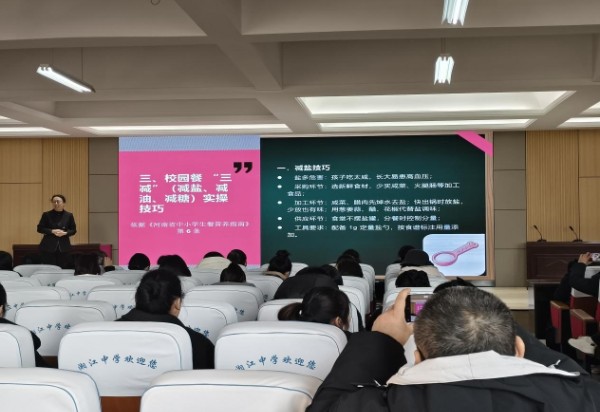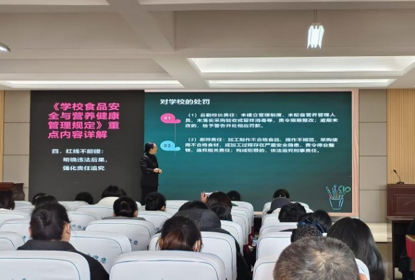 培训会上,区疾病预防控制中心主任马琳紧扣校园健康管理实际需求,采用“理论授课+案例解析”的模式,分别就校园餐营养与饮用水安全的重要性以及《学校食品安全与营养健康管理规定》《河南省中小学生餐营养指南》核心政策规范解读、校园餐“三减”(减盐、减油、减糖)实操技巧、科学配餐方法、饮食与口腔健康、校园的饮水安全等六大方面展开了详细讲授,结合食源性疾病暴发事件处置等典型案例,直观剖析风险隐患根源,系统传授科学配餐方法与风险防控技巧。