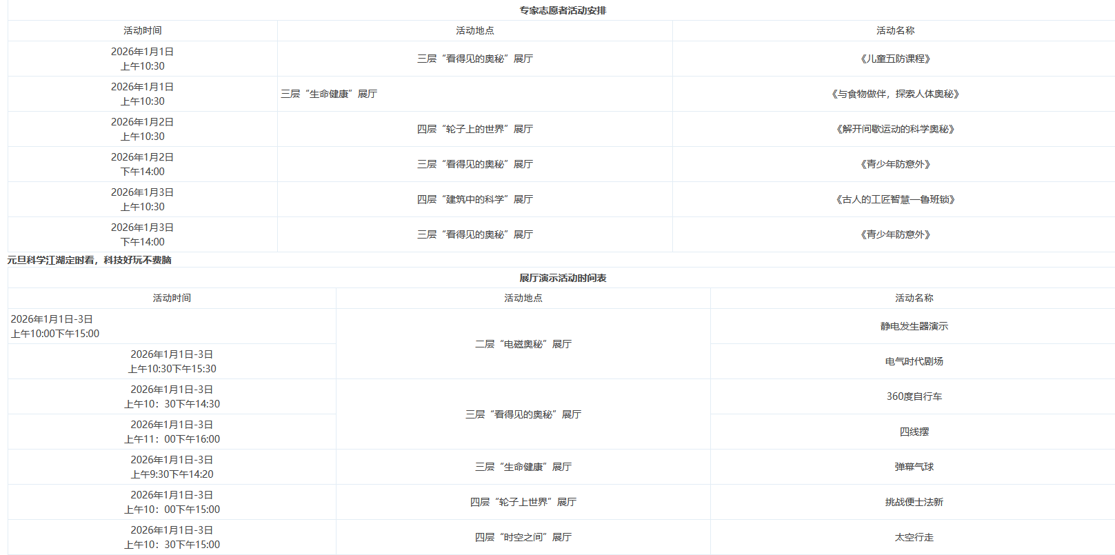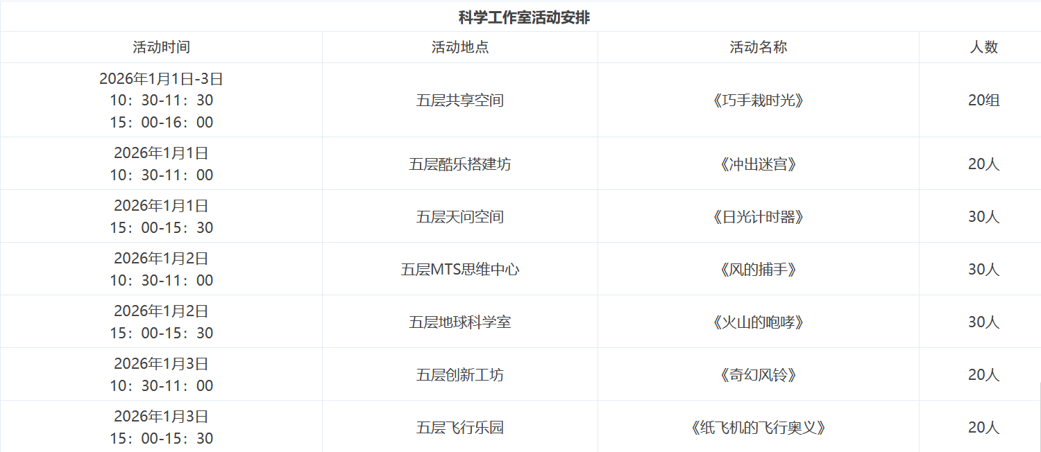 活动时间:2026年1月1日至3日上午 10:30 下午 15:30