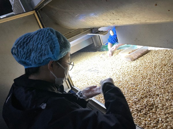 驻厂期间,专家团队深入生产一线,从原料预处理、关键工序控制、设备运行参数、生产线协同效率到包装储存环境,进行了全面考察与数据采集。针对生产工人反映脱油花生靠近出风口的花生冷却过快,调料易结块以及冷却后脆度不稳定的问题,专家团队建议对冷却区风机实施分区改造,加装风速调节装置,以根据不同区域冷却需求精准设定风速,同时增设温度监测点,以实现冷却效果的均匀可控,保障产品酥脆、口感稳定。