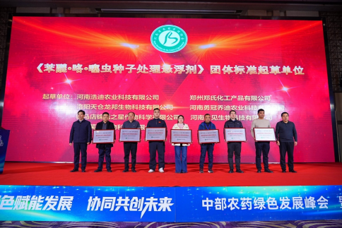 作为农药种衣剂生产与用量大省,河南在种衣剂标准化建设领域走在全国前列。会议现场举行了《苯醚·咯·噻虫种子处理悬浮剂》团体标准授牌仪式,河南浩迪农业科技有限公司、郑州郑氏化工产品有限公司、洛阳天仓龙邦生物科技有限公司、河南勇冠乔迪农业科技有限公司、驻马店锦绣之星作物科学有限公司、河南常见生物科技有限公司、河南笑牌生物科技有限公司7家企业获此殊荣。该团体标准的实施,将进一步规范相关产品的生产工艺、质量指标与应用技术,提升产品竞争力,推动河南种衣剂产业向标准化、高品质方向发展。