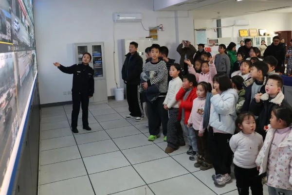 活动的最后一站是县公安局情指中心。巨大的监控屏幕上,县城的实时动态一目了然,这里正是守护万家灯火的“智慧大脑”。