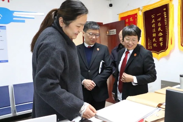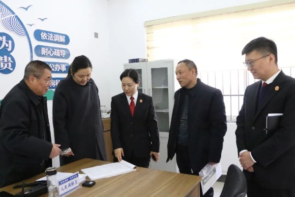 随后,代表们来到设立在法院的“人大代表调解工作室”。恰逢驻站代表正在参与一起赠与合同纠纷的先行调解,代表们认真旁听,并对调解员情理法结合、耐心疏导的工作方法表示赞许。该工作室作为人大代表常态化履职、深度参与矛盾纠纷源头化解的重要平台,其“驻在法院、面向群众、联动调解”的运行机制,引发了代表的浓厚兴趣和深入询问。