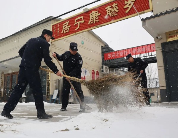 风雪为令,平安即责。城郊派出所民警深入辖区敬老院,逐一排查冬季用电消防安全隐患,拿起扫帚帮助老人们清扫院落积雪,坐在床边细致讲解用火用电和雪地出行注意事项,用贴心服务为老人们撑起安全“保护伞”;高铁站派出所民辅警加大巡逻频次,在出站口、候车厅等区域维持秩序,帮扶携带行李的旅客,确保每一位群众平安出行。从城区街巷到乡村小道,从白日喧嚣到深夜静谧,民辅警们用脚步丈量辖区每一寸土地,将安全隐患消除在萌芽状态。