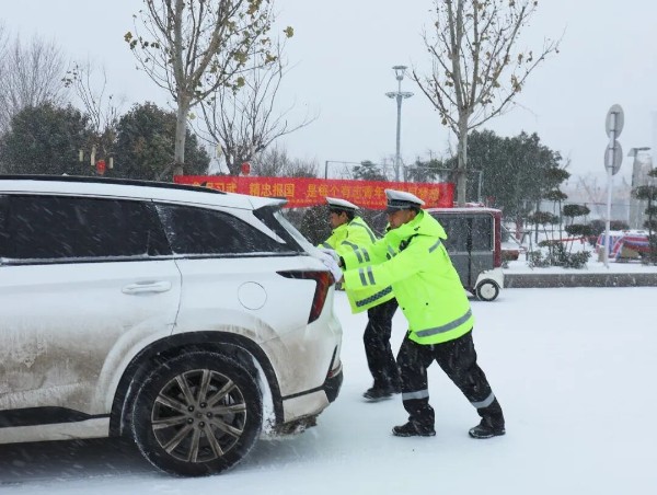雪落无声,守护有力。在这场与风雪的较量中,扶沟县公安局民辅警顶严寒、战风雪,在交通疏导、隐患排查、便民服务的第一线连续奋战,每一次俯身推车、每一次伸手救援、每一次耐心叮嘱、每一次严谨排查,都是让藏蓝底色在皑皑白雪中愈发鲜亮。