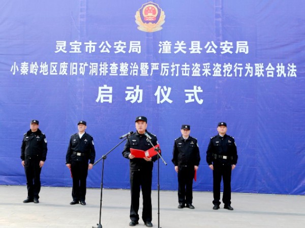 2026年1月28日,河南省三门峡市灵宝市和陕西省渭南市潼关县两地公安机关举行矿山区域联合执法行动启动仪式并同步开展集中行动,持续强化对小秦岭矿区废旧矿洞的排查整治力度,持续保持对盗采盗挖矿产资源等违法犯罪活动的严打高压态势,确保两地矿山秩序持续平稳。灵宝市副市长、公安局局长段永锋,潼关县副县长、公安局局长雷建利参加行动并共同宣布行动开始。