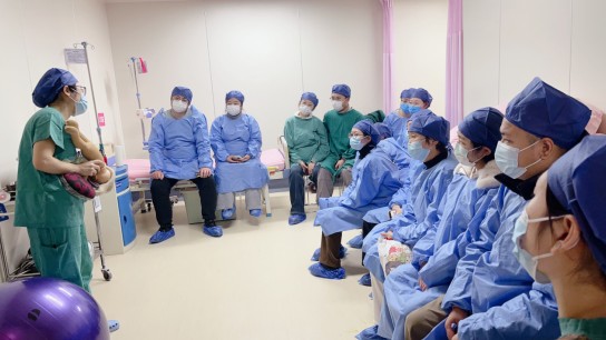 活动中,孕产家庭在孕妇学校老师带领下参观了产科病房、产房、待产室等关键区域,熟悉医院环境与流程,提前建立“入院即安心”的归属感。助产士为大家讲解了分娩信号的识别、呼吸与体位减痛方法、陪产伴侣的支持技巧及分娩计划制定等内容。通过模拟从入院、评估、待产到分娩、复苏的全流程,帮助每个家庭形成清晰的分娩预期与配合默契。现场还安排了呼吸法、分娩球、音乐放松等实用技能的体验环节,助力孕妈提升自我调节能力。活动最后,医护人员围绕高危妊娠识别、麻醉与用药、母乳喂养启动等话题,与各个家庭进行一对一交流,明确入院时机与家庭分工安排。