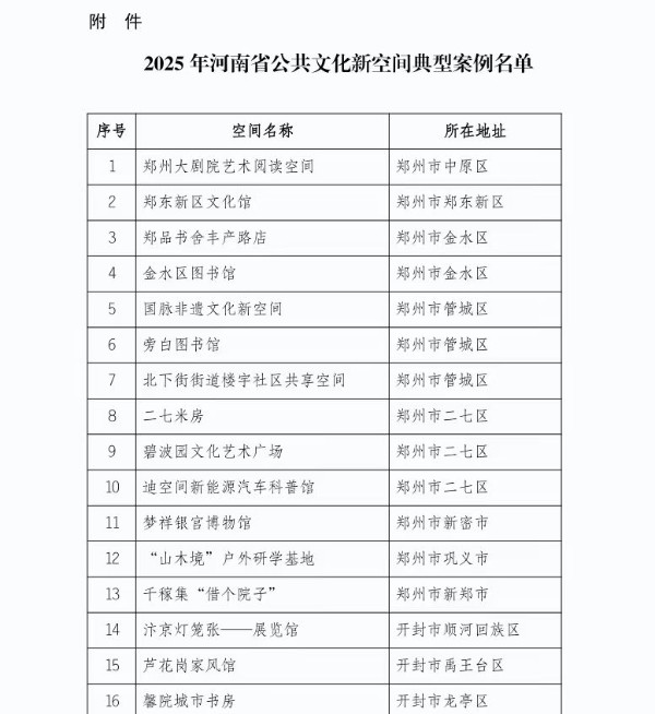 近日,2025年河南省公共文化新空间典型案例名单正式公布,由郑州市二七区推荐申报的“迪空间·新能源汽车科普馆”“二七米房”及“碧波园文化艺术广场”三个项目,经过层层筛选与公示,成功入选。它们凭借创新设计、多元功能与科技赋能,成为备受瞩目的文化新地标。
