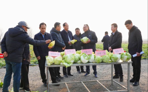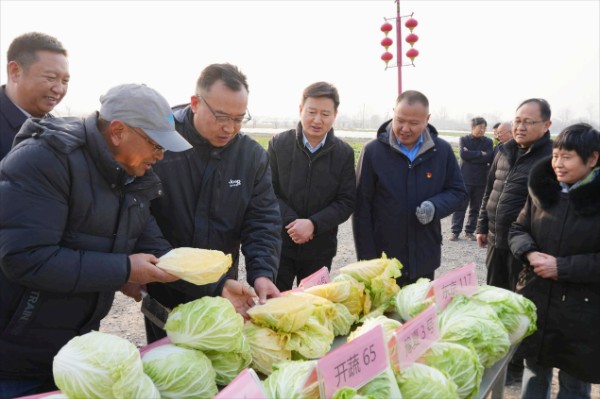 1月6日,河南省农业科学院现代农业科技综合共建县(永城市)特色大白菜新品种观摩测产会在永城市举办。此次活动由河南省农科院和永城市人民政府主办,院小麦研究所、蔬菜研究所、植物保护研究所、信息所及永城市农业农村局、苗桥镇人民政府等单位共同参与。现场对全省相关白菜育种单位征集的11个优异特色大白菜新品种进行了展示与测产。