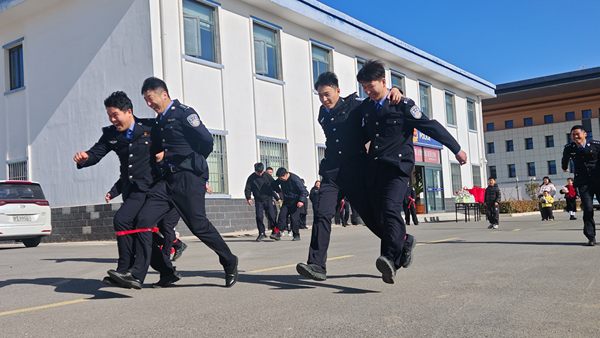 “同心同行”协同前行(两人三足家庭赛):组织民警与自己的配偶或子女组队,参加“两人三足”竞赛。比赛场上,家人彼此搀扶、步调一致、协力冲向终点。这一简单的体育活动,深刻象征了家庭作为坚强后盾,与民警风雨同舟、携手并进的深刻含义。家庭的紧密协作在此刻得到具象化展现,进一步强化了民警与家属间的情感纽带。