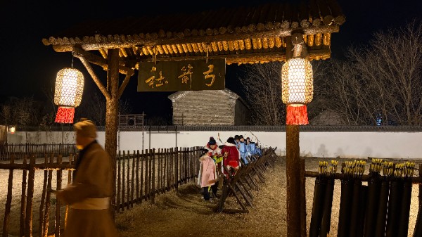 “梦回大宋”官窑主题文创街区的核心魅力,在于沉浸式体验。傍晚6点半,文创市集开市。游客手持兑换的“银票”,可在数十个摊位间品尝风味小吃、挑选精巧手作。更引人入胜的是轮番上演的实景剧目:街头卖艺者与“地痞”的冲突、鲁智深与林冲的精彩对决……在跃动篝火的映照下,历史场景鲜活再现。