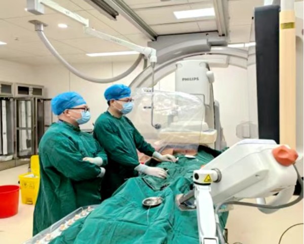首例患者为重庆来漯出差的龚先生,突发左侧肢体完全瘫痪并意识不清。经急诊评估,确诊为左侧颈内动脉闭塞。神经内科与介入科团队紧急实施介入取栓手术,成功开通血管。治疗一周后,患者意识转清,左侧肢体肌力明显恢复。