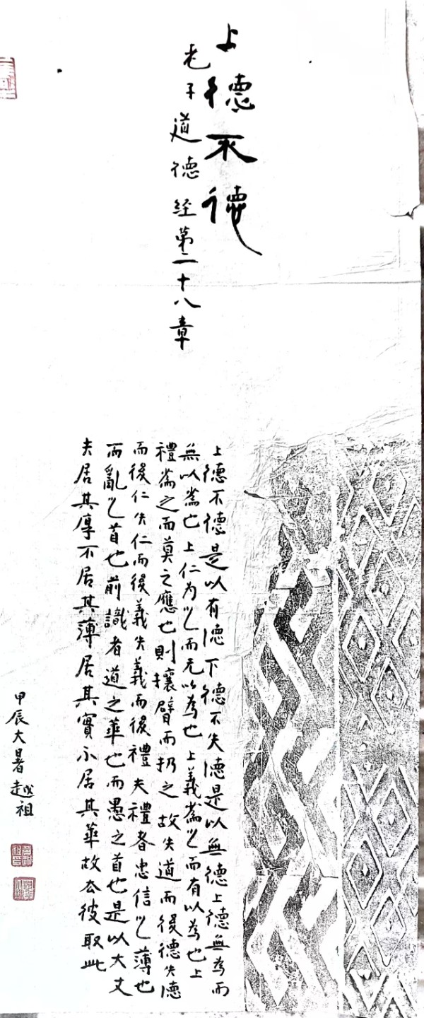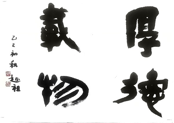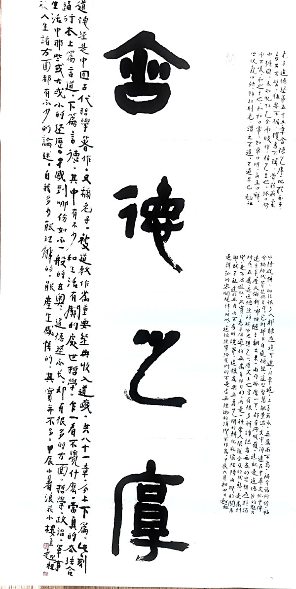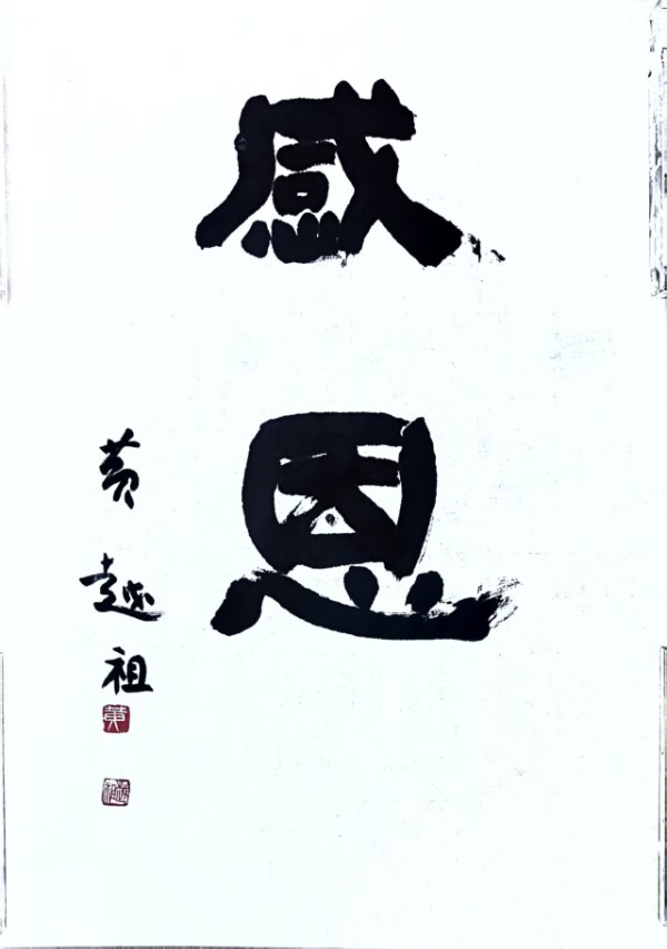 那日午后,暖阳透过窗棂,笔者与黄越祖续茶谈书,兴之所至,只见他挽袖捉笔,挥毫泼墨。顷刻间,一个“道”字跃然纸上,字大如斗,气势磅礴。