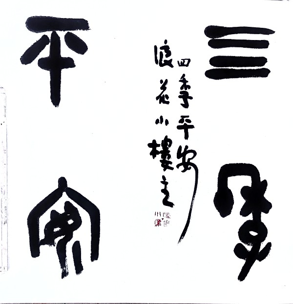 “我的书法创作定位在大字与小字结合的方向上,彰显一动一静。”黄越祖说,“大字更为动感,小字更为细腻。习字如同做人,讲究整体才更和谐。”