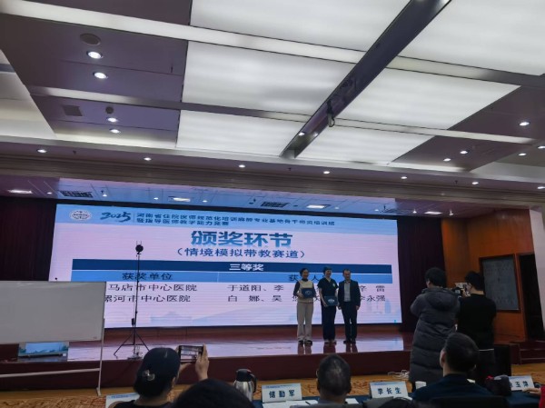 在“情境模拟带教赛道”中,漯河市中心医院团队在有限时间内反复打磨教案、优化流程、演练配合,再次斩获三等奖。通过高度还原临床真实场景的模拟教学,团队展现出严谨的教学逻辑、清晰的带教思路和良好的团队协作能力,赢得评委一致好评。