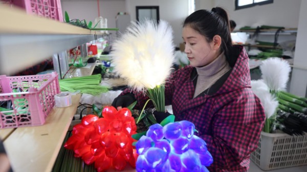 在种植上开辟新路的同时,边岗村“两委”积极和开封市妇联对接,通过“巾帼共富坊”项目,组织30余名妇女和老人参与电子花制作。村民王大姐笑着说:“日收入50-60元,既能照顾老人孩子,又能挣零花钱,这日子越过越有奔头!”“巾帼共富坊”项目不仅盘活了农村闲置劳动力,更让冬日农闲变为“增收旺季”。