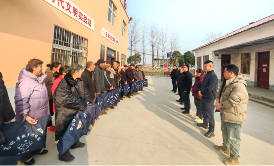 1月16日,河南牧业经济学院驻村工作队联合新蔡县孙召镇王岗村“两委”,向该村40余名公益性岗位人员发放御寒棉大衣,以实际行动践行责任与担当。