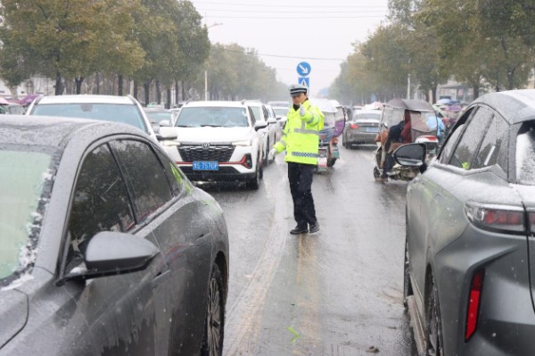 寒潮突至,风雪席卷淮滨。凛冽寒风裹挟着冰雪,给道路交通安全带来严峻考验。当城市被银装覆盖,当市民出行步履维艰,淮滨县公安交警大队以雪为令、闻雪而动,迅速启动恶劣天气应急预案,全警动员、顶风冒雪坚守执勤一线,用藏蓝身影筑起一道坚不可摧的安全屏障,守护万千学子平安放学路,保障市民出行顺畅无忧。