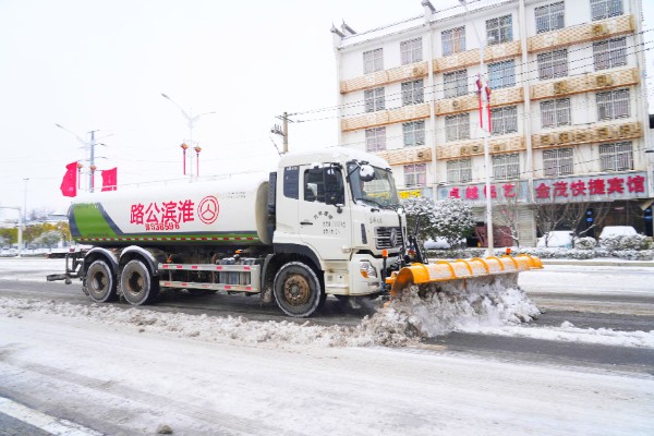 1月20日上午8时,淮滨县公路局几台铲雪车全部“上岗”,对城区几条主干道积雪进行铲除,确保了城区道路安全通畅。