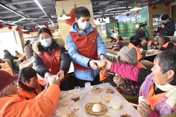 1月20日,开封市杞县普降大雪,杞县县委社会工作部、杞县融媒体中心、杞县公益协会等单位联合组织寒假返乡大学生、爱心志愿者开展为环卫工人送午餐志愿者服务活动,让爱心与善意在寒冷中传递温情。