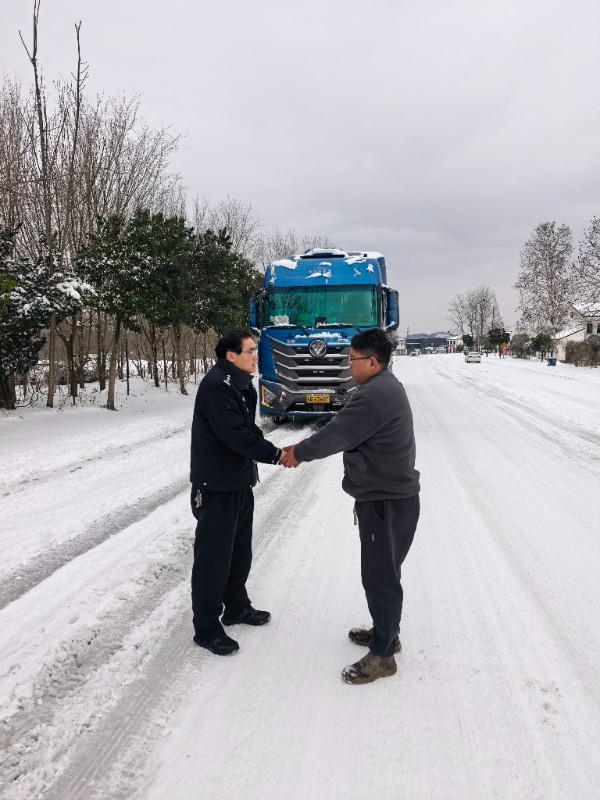 浉河区武胜关街道办事处在巡查中第一时间发现该情况,迅速启动应急响应。街道立即协调大型铲车赶赴拥堵核心区域,对车道积雪进行快速清理,并在已清路段和结冰严重区域科学撒布融雪剂,防止二次结冰。同时,组织本单位干部职工携带清雪工具,对机械作业盲区进行细化清扫,并协助引导车辆有序通行。考虑到滞留司机饮食困难,工作人员紧急调配方便食品和饮用水,徒步送至被困车辆,提供基本生活保障。经数小时连续作业,该路段交通秩序全面恢复。