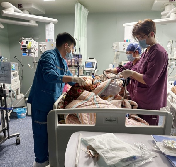 然而就在返程途中,患者病情突然恶化:血压急剧下降,心率飙升至180次/分,血氧饱和度跌至80%以下,生命体征濒临崩溃。“立即抢救!”医护人员沉着应对,迅速开展镇静、镇痛、利尿等一系列急救措施,同时轻声安抚患者情绪,监测仪的滴答声与医护人员的指令声,在狭小的空间里交织成生命的守护曲。