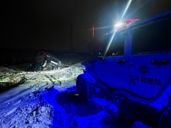“叮铃铃——”1月20日凌晨0点10分,一阵急促的铃声划破蓝天救援队24小时值守办公室的静谧,宝丰县城东环路车辆坠沟的求助信息传来。队员们携装备火速奔赴现场。抵达后,他们迅速拉起安全警示带,在皑皑白雪中筑牢安全防线:俯身勘察地形的专注、牵引绳精准固定的默契、千斤顶缓缓发力的沉稳、专人瞭望警戒的审慎,每一个动作都承载着对生命的敬畏。队员们始终坚守不退,最终成功将车辆安全拖至路面。这一夜,十余次紧急救援轮番上演,他们以专业破局、以速度护航,为风雪迷途者点亮希望之光。